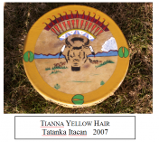 Les 2 premiers Tambours sont de Tianna Yellow Hair "Shaihila Win", âgée de 12 ans. Elle est Cheyenne et scolarisée à l'American Horse School sur la Réseve de Pine Ridge. Le 3e Tambour est l'oeuvre de Percy Cottien "Wicapi Yamni", âgée de 18 ans. Elle est Lakȟóta.