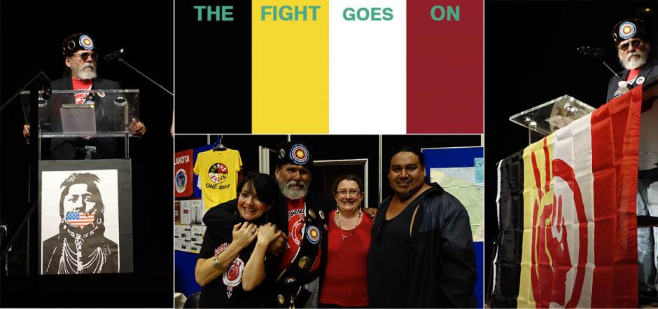 Dennis Banks sur le Stand Piƞe Ridge Eƞfaƞce Solidarité avec son fils Tatanka Banks, le 10 Octobre 2015,