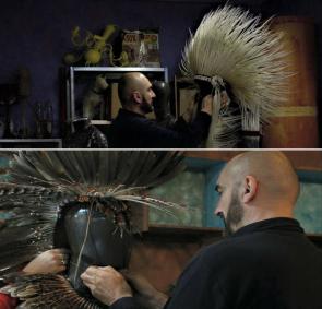 Un créateur atypique apaise une souffrance personnelle par la création de coiffes d'aspirations amérindiennes. Un travail remarquable qui honore la Mémoire d'un Peuple ! Il créé, entre autre, "GENOS-BONNET", une œuvre participative impressionnante qui dénonce les génocides. Constituée de 800 plumes d'oies, cette Coiffe rend hommage aux 500 Tribus d'Indiens d'Amérique du Nord et aux 300 massacrés de Wounded Knee.