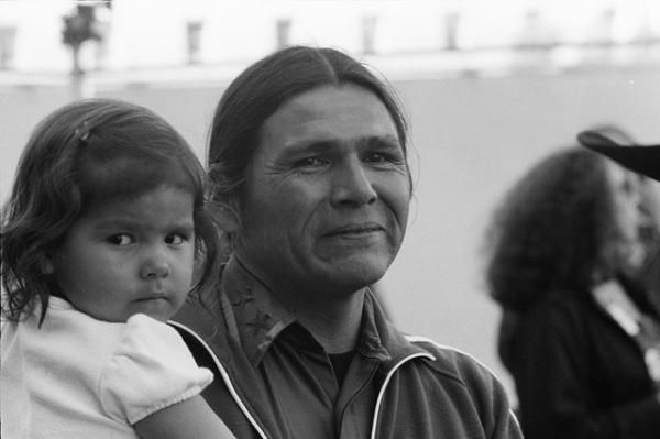 Dennis Banks avec sa Fille, lors d'un grand rassemblement antinucléaire à San Francisco,