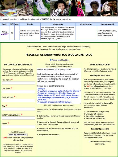 Rationaliser le processus pour nos fidèles Donateurs ne signifie pas que le "Programme OKINI" est sans pilote ou impersonnel... il est simplement plus facile à utiliser ! En simplifiant le processus de DON OKINI, nous espérons encourager davantage de personnes à l'utiliser, et ainsi plus de Familles Lakȟóta pourront en bénéficier.